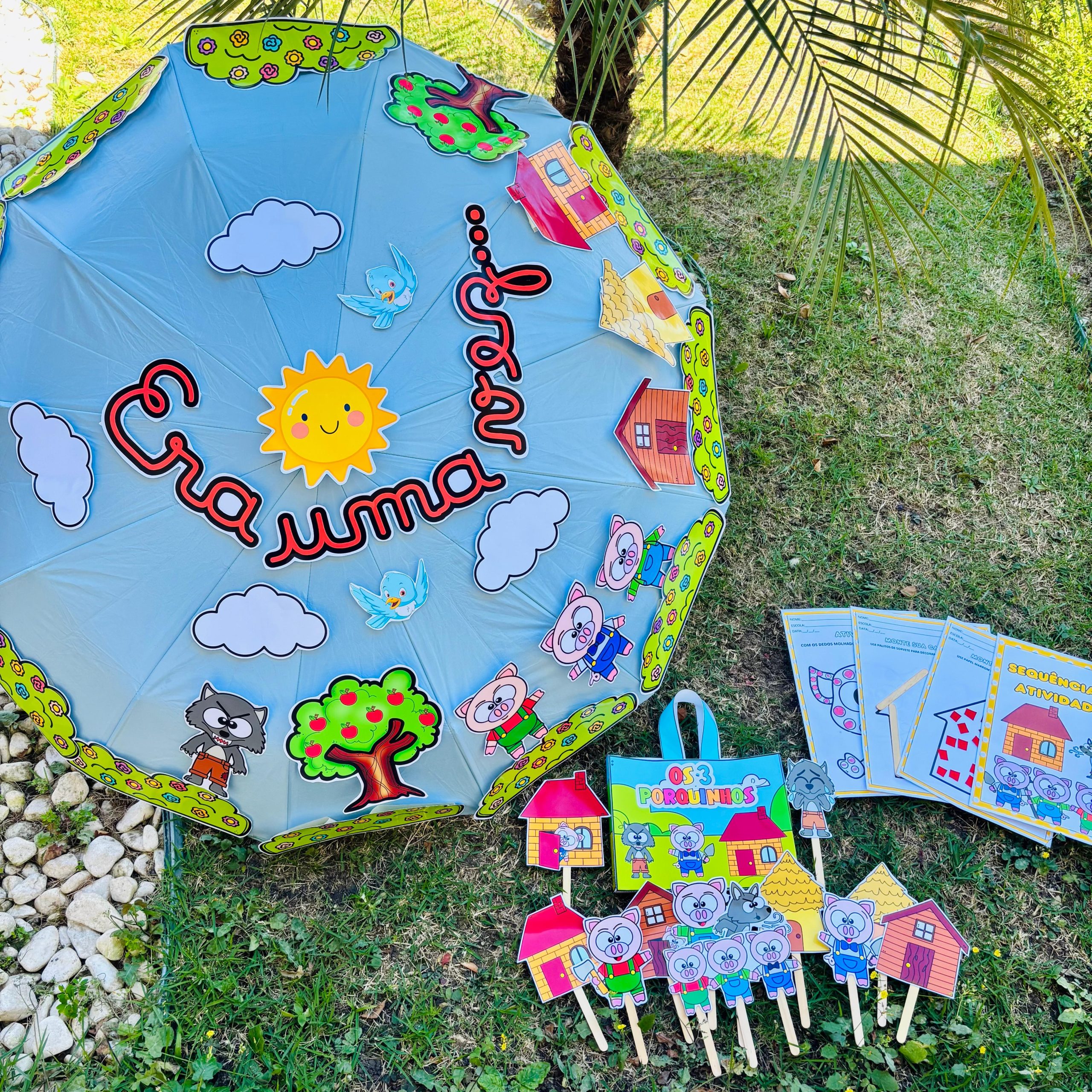 ✔ Decoração para guarda-chuva literário com os personagens da história