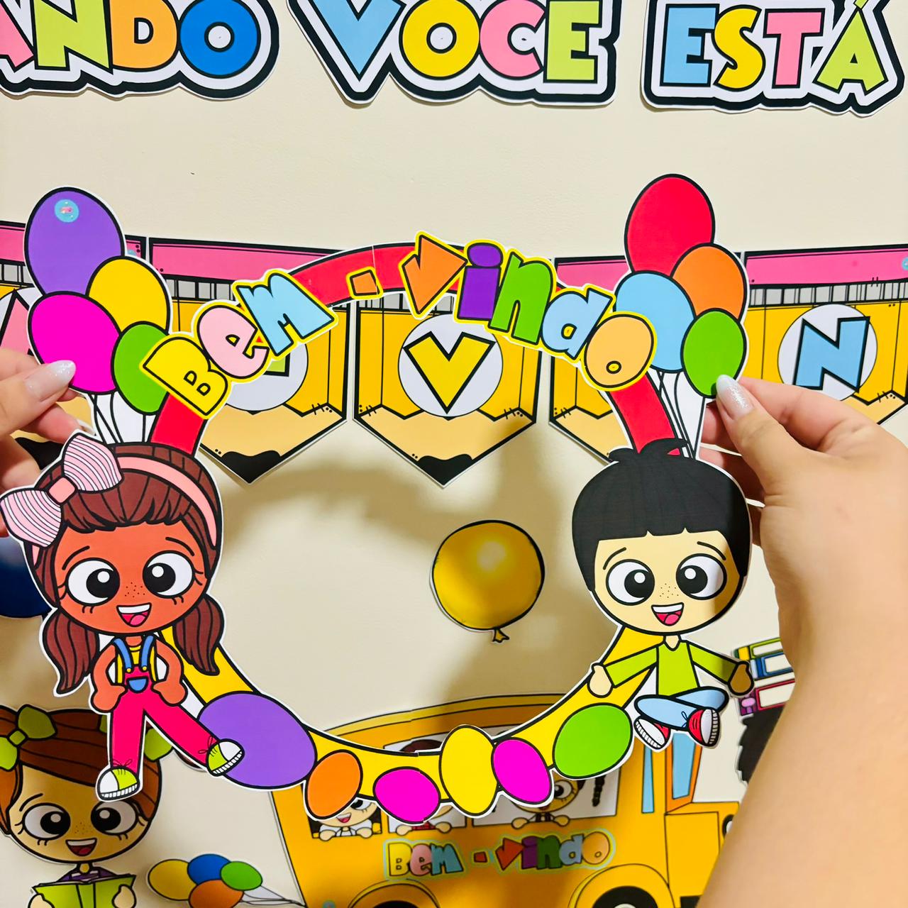 🎉 Transforme a volta às aulas em um momento mágico e inesquecível para seus alunos. Eles vão adorar ver suas fotos no painel lúdico e se sentirão acolhidos com as saudações especiais!